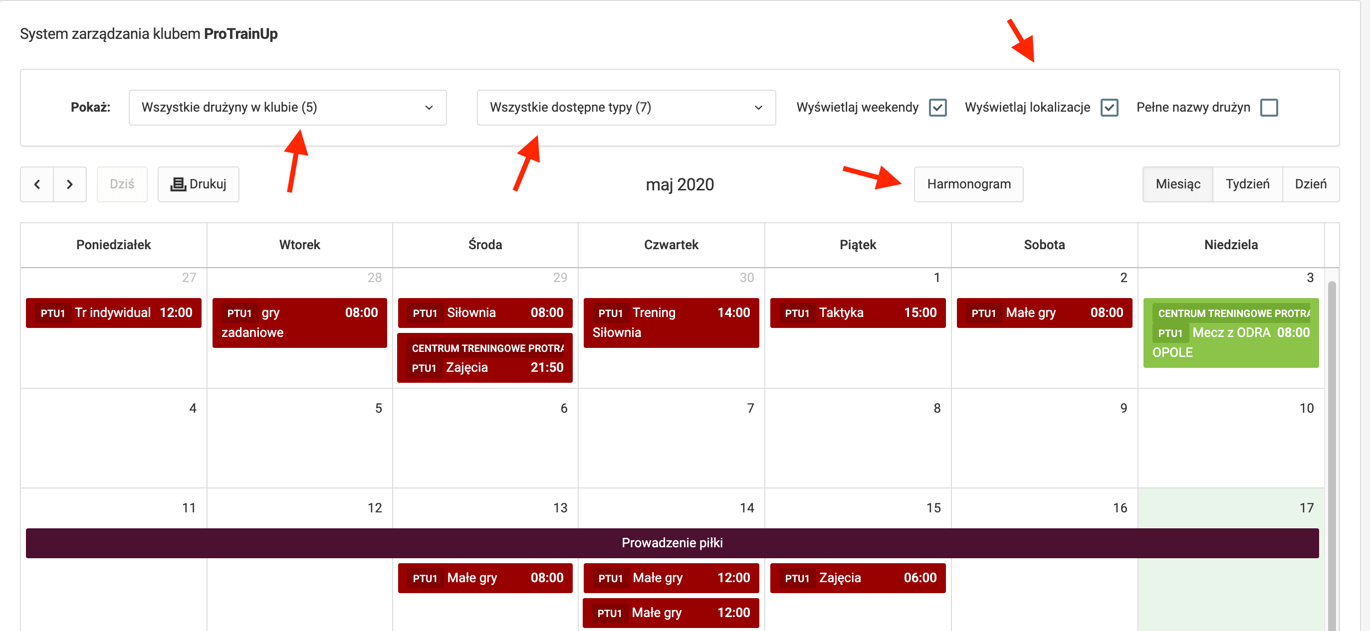 Po zaplanowaniu bloków treningowych, pojawią się one na kalendarzach trenerów poszczególnych drużyn, dzięki czemu trenerzy będą wiedzieli na jakim elemencie mają się skupić podczas treningów.